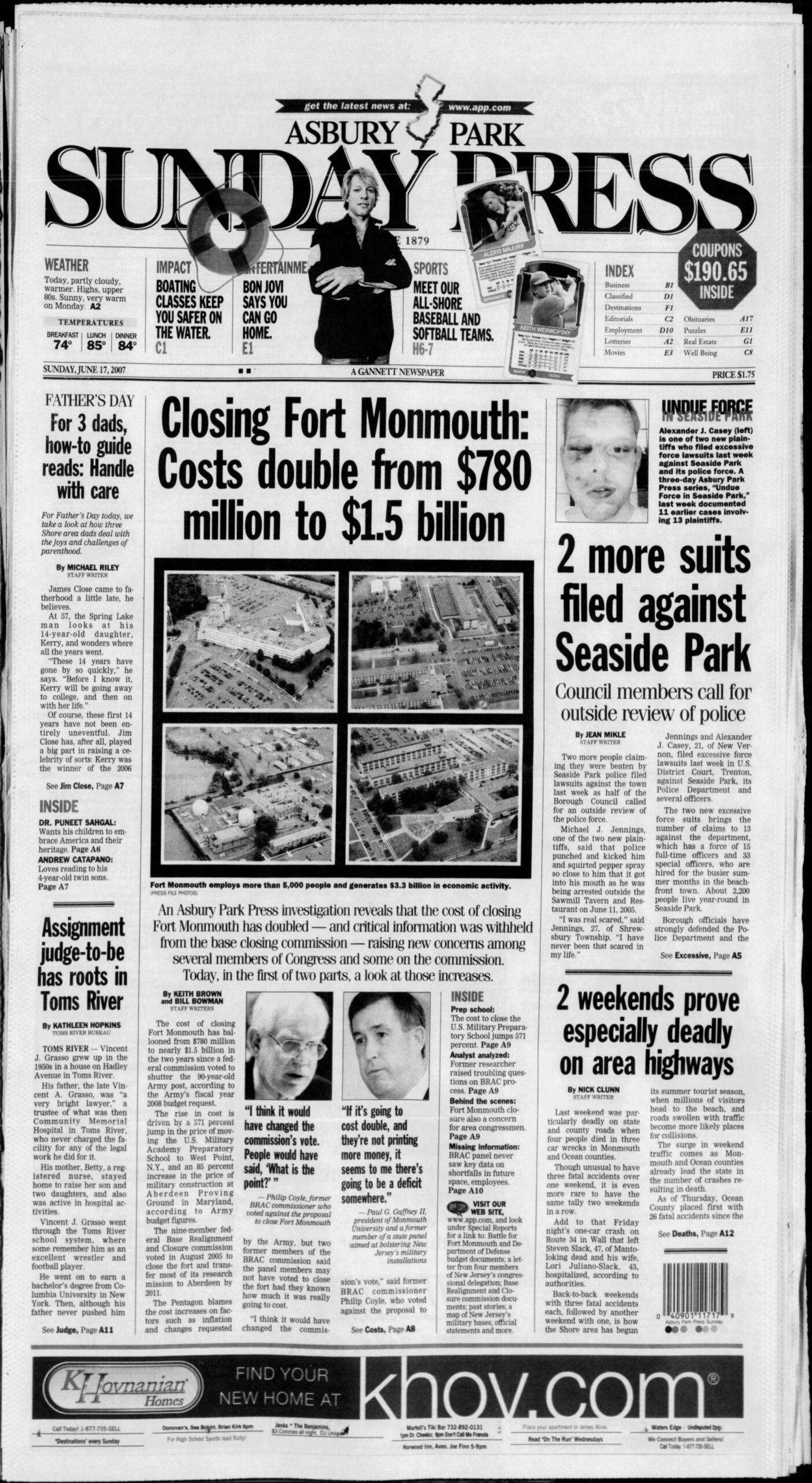 This is an investigation a talented colleague and I undertook after the U.S. Army announced it would close Fort Monmouth, a nearly 100-year-old post in our coverage area. The closure promised widespread economic and cultural upheaval in the entire region, with reverberations throughout the state. Publicly, the Army said it would cost $780 million to shutter the post. We found their accounting was off. Substantially. Closing Fort Monmouth was going to cost in the neighborhood of $1.5 billion.